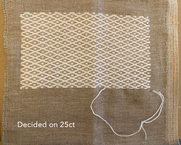 This pair of short stays is much like what ladies would have worn in the Regency era but with a cultural twist. The outer layer of linen will be embroidered in a traditional koginzashi pattern. As an undergarment which will be worn multiple times, the surface of the stays is an excellent place to apply koginzashi - a counted embroidery technique used by the feudal working class of Japan to both reinforce areas of wear as well as add warmth and thickness to thin linen garments